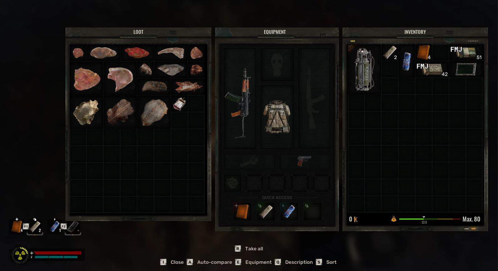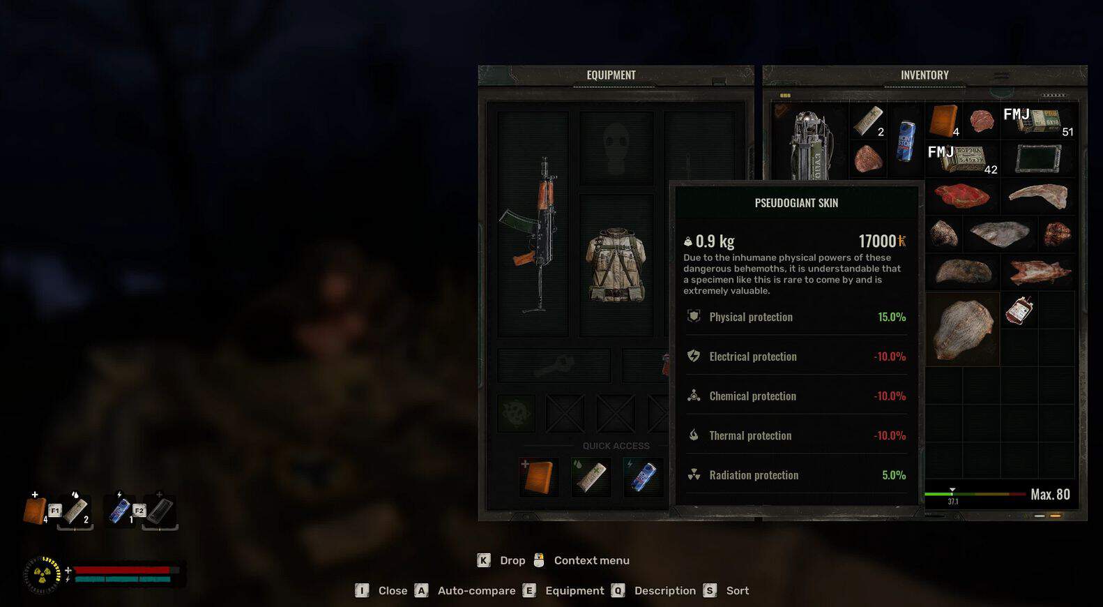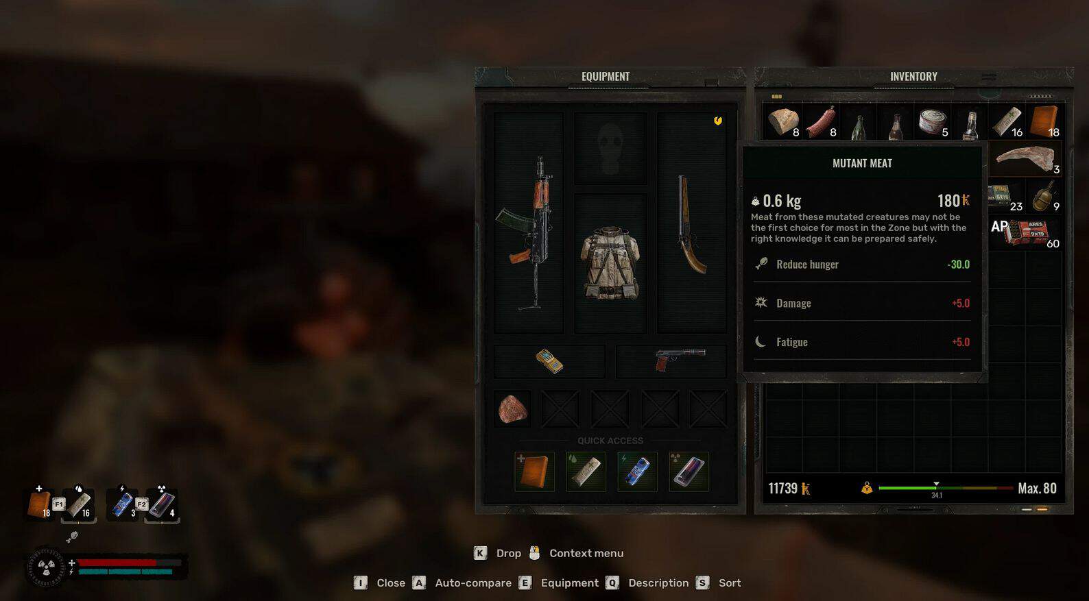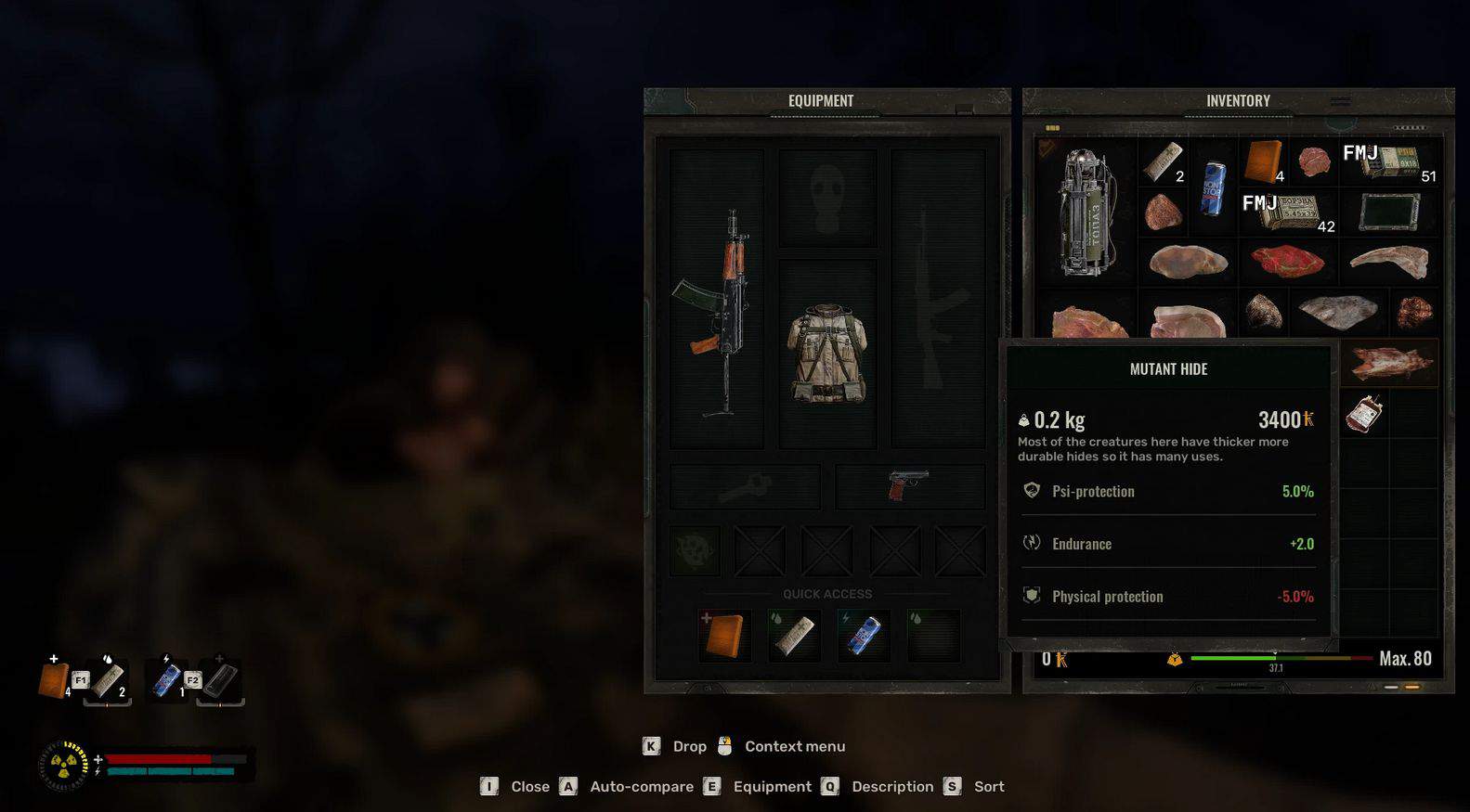 This addon adds skin and meat drops depending on the mutant you killed. Each new item has its own additional properties that can be applied. Meat can be consumed (sausage eating animation), yes, it is not the best food, but if you play with a loot balance that reduces food spawning, then you can use it as a last resort. New mutant skins have different effects, some can replace artifacts at early stages.