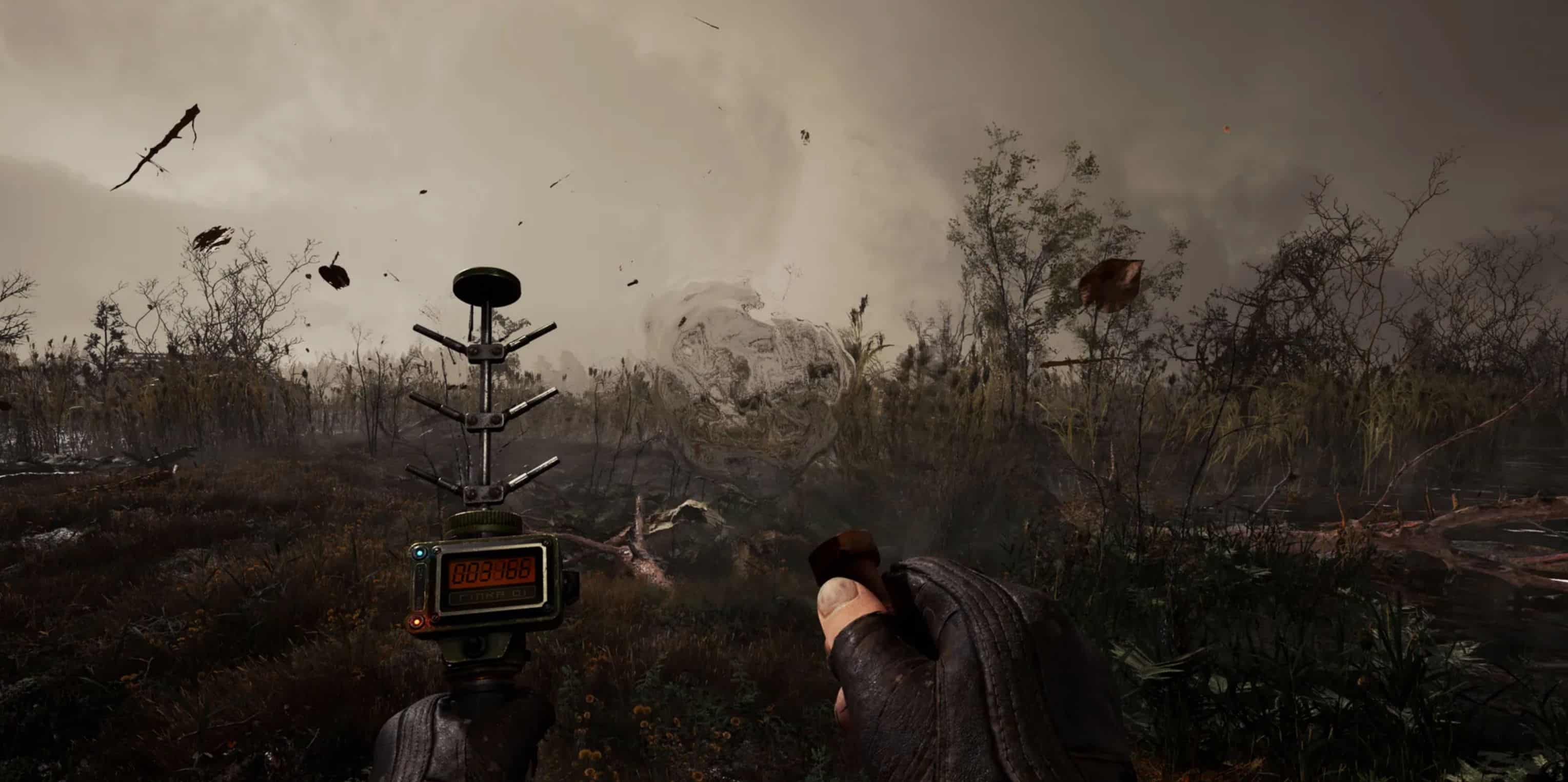 Skif finds himself in the moss with a mutant dog attacking him. As he pulls out a gun to defend himself, he realizes he’s out of ammo. With quick thinking, he kicks the creature into a nearby anomaly, resulting in its brutal demise. This intense encounter is my introduction to the unforgiving realm of STALKER 2: Heart of Chornobyl.